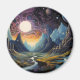 Fantasy landscape with mountains, river and moon Digital painting, Stellar Odyssey A Psychedelic Voyage Through Space,