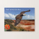 Puzzle featuring a fantasy landscape with bald eagle and blossoming cactus.