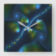 Fantasy Lights Abstract Blue Green Yellow Fractal Square Wall Clock