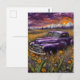 Fantasy Retro Purple Vechicle in a Mountain Meadow Postcard