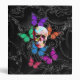 Chic elegant sophisticated girly, cute romantic fantasy skull and beautiful colorful multicolored butterflies, digitally collaged, on a black vintage Gothic Baroque background pattern, perfect for day of the dead or as a pretty goth gift for her. Visit the LEATHER_AND_LACE STORE for more alternative gothy gifts. This design was created from a vintage skull and some vintage colorful butterflies and a stylish black swirly floral damask background, which was made from a photograph of an old gate. This stylish day of the dead style design would make a great gift for her. Goth alternative girls would love this pretty romantic original design. Easily personalize this by adding your name or text to create a persona gift that she will love.