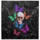 Chic elegant sophisticated girly, cute romantic fantasy skull and beautiful colorful multicolored butterflies, digitally collaged, on a black vintage Gothic Baroque background pattern, perfect for day of the dead or as a pretty goth gift for her. Visit the LEATHER_AND_LACE STORE for more alternative gothy gifts. This design was created from a vintage skull and some vintage colorful butterflies and a stylish black swirly floral damask background, which was made from a photograph of an old gate. This stylish day of the dead style design would make a great gift for her. Goth alternative girls would love this pretty romantic original design. Easily personalize this by adding your name or text to create a persona gift that she will love.