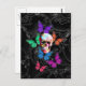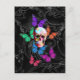 Chic elegant sophisticated girly, cute romantic fantasy skull and beautiful colorful multicolored butterflies, digitally collaged, on a black vintage Gothic Baroque background pattern, perfect for day of the dead or as a pretty goth gift for her. Visit the LEATHER_AND_LACE STORE for more alternative gothy gifts. This design was created from a vintage skull and some vintage colorful butterflies and a stylish black swirly floral damask background, which was made from a photograph of an old gate. This stylish day of the dead style design would make a great gift for her. Goth alternative girls would love this pretty romantic original design. Easily personalize this by adding your name or text to create a persona gift that she will love.