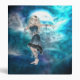 Fantasy Sky Siren Ethereal blue sky - full moon glowing through the clouds- Beautiful blond Moon Goddess, Sky Siren pointing to her beautiful White dove carrying a single rose