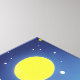 A stylized, fantasy of the skyline of Paris, under a blue, starry sky, with a full moon