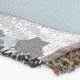 A quality printed throw has its advantages. This is a much finer weave throw than its loopier cousins, and though lighter, it is worth the investment for custom room accessorizing. The back is much prettier than the typical brown, and the fringe on the long sides very vivid, the selvage nicely done. Before photographing, I washed the throw in cold water, delicate, with a thicker woven throw the same size. On tumble dry low, this throw was dry in half the time as the other. This is a very practical quality if you use throws for furniture covers or to wrap up in frequently. The sleekness of the fabric makes it a great layer for accenting or protecting without the feeling of sitting on too much stuff. Perfect for napping or when you feel a light chill coming on. The color printing is beautiful and on this fabric, matched the design and color of my Photoshop image. This is an advantage for blending room fabrics and colors. The fringe on the short sides prints the colors from the design image and therefore varies from the side fringe. I streaked a white fractal line through the plaid pattern to give the illusion of weaving. This printed as crisp as an illusory thread, and put some white in the short side fringe, showing another advantage of print vs loomed- for artistic purposes, line lines, detail, and color integrity can be planned and preserved. My loomed throws have color limitations and more of a needlepoint texture. Print throws reproduce an exact image. The throw felt a little stiff straight out of the package, but this went away in the first delicate wash. Of course I searched the wash water for ink or bleeding and there was none.