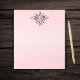 This notepad is a pretty light pink color with a fantasy sun with a pretty gray face and fancy pink and black rays. The sun has pink lips and circle pink cheeks.