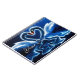 Dreamy swans glowing on a midnight blue background with an abstract refection, fully customizable.