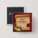 Fantasy sword and crown Jewish Bar Mitzvah personalized button favor. This medieval times fantasy sword and sorcery Bar Mitzvah button favor features a red velvet look background, a simulated parchment scroll, a king's or prince's crown, a sword, and a wax seal with a subtle Jewish Star of David.