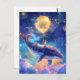 A girl holds a balloon as she and a whale float through the clouds fantasy art