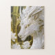 Fantasy White and Gold Dragon with Flowers Jigsaw Puzzle