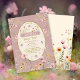 Plain white envelopes are included with paper invitations and will come to fit the invitation size you select. If you don’t need the envelopes, you may choose to not receive them by selecting the dropdown below "Envelopes" and choosing "None." If you’d like to have a design on your envelopes, you can browse all of these available envelopes to find the design that complements your Fantasy Wildflower Fairy First Invitation.