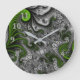 Fantasy World Green And Gray Abstract Fractal Art Large Clock