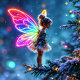 Christmas Cute Magical Fairy with Neon Glow Wings - Fantasy Xmas Snow Tree Holiday Lights, Festive Art, Colorful Unique Decor. (PLEASE! - See also other new collections for more choices) ((Attention!!! - By changing the size of the product, the Design picture can be shifted, it can be adjusted to the new size by clicking on the button - “Personalize \ Edit using Design Tool”, I always leave the opportunity to change the size and position of the Design on the product to your taste.))