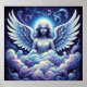 This fantasy poster features a whimsical serene Angel resting on blue white purple clouds. Finished in a beautiful oil paint print.