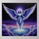 This fantasy poster features a whimsical Angel in blue white purple tones, floating just above a magic portal in the clouds. Finished in a oil paint print.