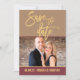 Iced Coffee, Ruby Wine and Cornsilk Yellow Wedding Save the Date photo card with cursive handwriting script customizable to your event specifics. Sample image has been used with permission.
