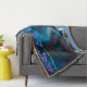A quality printed throw has its advantages. This is a much finer weave throw than its loopier cousins, and though lighter, it is worth the investment for custom room accessorizing. The back is much prettier than the typical brown, and the fringe on the long sides very vivid, the selvage nicely done. Before photographing, I washed the throw in cold water, delicate, with a thicker woven throw the same size. On tumble dry low, this throw was dry in half the time as the other. This is a very practical quality if you use throws for furniture covers or to wrap up in frequently. The sleekness of the fabric makes it a great layer for accenting or protecting without the feeling of sitting on too much stuff. Perfect for napping or when you feel a light chill coming on. The color printing is beautiful and on this fabric, matched the design and color of my Photoshop image. This is an advantage for blending room fabrics and colors. The fringe on the short sides prints the colors from the design image and therefore varies from the side fringe. I streaked a white fractal line through the plaid pattern to give the illusion of weaving. This printed as crisp as an illusory thread, and put some white in the short side fringe, showing another advantage of print vs loomed- for artistic purposes, line lines, detail, and color integrity can be planned and preserved. My loomed throws have color limitations and more of a needlepoint texture. Print throws reproduce an exact image. The throw felt a little stiff straight out of the package, but this went away in the first delicate wash. Of course I searched the wash water for ink or bleeding and there was none.