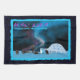 A digital painting featuring an igloo on the polar ice pack, sled dogs and a man in a parka. The northern lights glow overhead. Kuvianak Inovia is Merry Christmas in the Inuktitut (Eskimo) language. Above the English text Kuvianak Inovia appears in the Inuktitut alphabet.