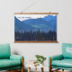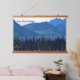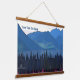 A depiction of summer in the far north. Blue mountains, blue lake water, dark green trees, pink fireweed, and overcast. Add your own text.