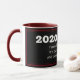 Modern, minimalist NEW YEAR Coffee Mug showing black and white halves with thin red borders. The text reads 2020 FAREWELL IT'S OVER AND DONE, LOOKING FORWARD NOW TO 2021. On one side there is a vertical HAPPY NEW YEAR, which is CUSTOMIZABLE so you can personalize with your name or own greeting. A stylish New Year mug to say Farewell to 2020 and to embrace the New Year ahead.