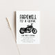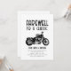 If you love simple, this simple style invitation is right for you. The invitation features an elegant design, with a soft, white background with a vintage motorcycle In the center, the party details are beautifully scripted in a black block vintage font exuding an air of sophistication. Welcome guests and honor your retiree, with this retirement party invitation. Background color and text is editable.