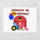 Kids who love farms and farm animals will love this colorful, fun Farm 3rd Birthday design featuring a red barn, blue tractor, pig, chicken, balloons, and text that reads "Celebrating My 3rd Birthday!".