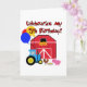 Kids who love farms and farm animals will love this colorful, fun Farm 5th Birthday design featuring a red barn, blue tractor, pig, chicken, balloons, and text that reads "Celebrating My 5th Birthday!".