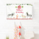 This cute birthday banner features watercolor farm animals with greenery, colorful confetti and a red gingham border.