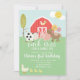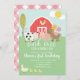 Farm animal birthday invitation with pink plaid