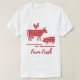 Country farmhouse t-shirt design for men and women features farm animal silhouettes (cow, chicken, pig) with red bandana fill