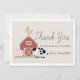 This cute and modern gender-neutral baby shower thank you card features a pig, chicken, and cow with a red barn on a beige background framed by a white border. The reverse side features a white background with black cow patterns. Personalize for your needs. You can find matching products at my store.