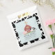 This cute and modern "oink, moo, cock-a-doodle do" boy's birthday favor bag features a pig, chicken, and cow with a red barn on a light blue background framed by a border in black & white cow patterns. Personalize for your needs. You can find matching products at my store.