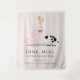 This cute and modern "oink, moo, cock-a-doodle do" girl's birthday welcome backdrop/tapestry features a pig, chicken, and cow with a pink barn on a blush pink background framed by a white border. Personalize for your needs. You can find matching products at my store.