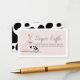 This cute and modern girl baby shower diaper raffle ticket features a pig, chicken, and cow with a pink barn on a blush pink background framed by a white border. The reverse side features a white background with black cow patterns. Personalize for your needs. You can find matching products at my store.