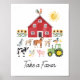 Invite friends and family to take a favor at your little one's birthday with this farm themed sign, featuring all kinds of farm animals and a big red barn!