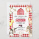 Farm Animals Boy Red Gingham Barnyard Birthday Invitation