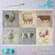 Six Farm animals in collage tissue decoupage paper for furniture and craft projects