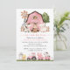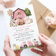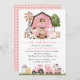 Invite friends and family in style and set the tone for your special day with this charming birthday invitation. Design features farm animals (cow, horse, sheep, pig, rooster, chicken), pink barn and pink tractor on white background.