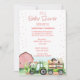 Farm Animals Green Tractor Pink Baby Shower Invitation