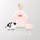 This cute wall decal sticker features your name with farm animals such as a cow, a pig, and a chicken, and a barn in pink. Perfect for nursery and kids' room! Personalize it for your needs. You can find matching products at my store.