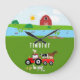 Farm Animals & Red Tractor Barnyard Custom Name Large Clock