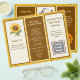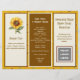 Three section flyer / business brochure with a sunflowers and farming theme. Brown and golden yellow colors and six sections, using both sides, to add lots of information about your business. Templates are provided for all titles and wording, with a whole about section with photo and text. Use the QR code image to add your own, along with a logo on the front page. Two sunflower images can be left as part of the design, or replace them with images of your own. Fold either like an accordion, or double fold inward. Paper size is 8.5 x 11 inches.