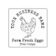Rustic Farm Fresh Eggs stamp design with rustic style fonts and hand-drawn hen illustration. Create professional farmhouse stamps for fresh free range eggs, egg cartons, poultry meat packaging or any other related product using this editable stamp template.