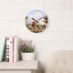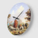 Wonderful vintage fine art painting of Americana with a Farmhouse, Barn with Horses, a bridge over a creek and a Cart with an Ox out in the country is on this Wall Clock. Image is public domain due to expired copyright.