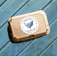 Add your name or farm name to this design and you have a cute way to sign your farm fresh eggs or egg cartons. This design features a delft blue laying hen and custom text with a double line border. Change the text to your own.