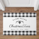 Custom-designed modern farmhouse doormat featuring farm fresh Christmas trees design with black and white buffalo check pattern.