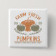 This charming fall design features the phrase "Farm Fresh Pumpkins" prominently displayed in a warm, inviting font. The design centers around a trio of pumpkins, with a large, vibrant orange pumpkin in the middle flanked by two smaller green pumpkins. The pumpkins are accented by simple, elegant branches of leaves that frame the composition, adding a touch of rustic charm. Above the pumpkins, the text "Farm Fresh" is arched, while below, the word "PUMPKINS" is emphasized in bold lettering. Additional text, such as "Hand Picked" and "Open Daily," along with "Hayrides," "Corn Mazes," and "Apple Cider," highlights the festive, farm-to-table nature of the fall season. The earthy color palette of orange, green, and beige enhances the natural, organic feel of the design.