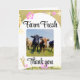 Share your gratitude with rustic charm using this Farm Fresh Thank You folded card. Featuring a country-inspired design, it’s perfect for homesteaders, backyard farmers, small business owners, and anyone who wants to send appreciation with warmth and authenticity. The front cover highlights farm-fresh elements in a clean rustic style, the inside left allows space for a meaningful photo or illustration, and the inside right gives room for your personalized thank you message. With customizable backgrounds and natural motifs, this card is ideal for farmers’ market sellers, small business owners, or as a thoughtful gift enclosure.