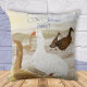 This nostalgic farmhouse themed pillow is 2-sided. One side has farm geese caught in a snow flurry. The other side has vibrant winter oranges on a table. Personalize your pillow with your own text on both sides. Colors include light blue font, vibrant orange and blue, and natural beige and browns.